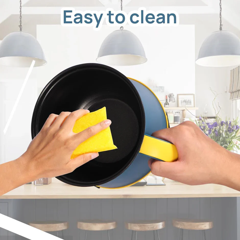 - [Non-Stick Stainless Steel Electric Hot Pot] The inner liner of this electric cooker is made of stainless steel and ceramic glazed non-stick coating, which is rust and stain resistant, harmless and can be used for a long time. Suitable for cooking ramen noodles, cooking spaghetti, frying eggs, cooking hotpot, stir-frying vegetables, frying steak, stew, porridge, steaming dumplings and so on.