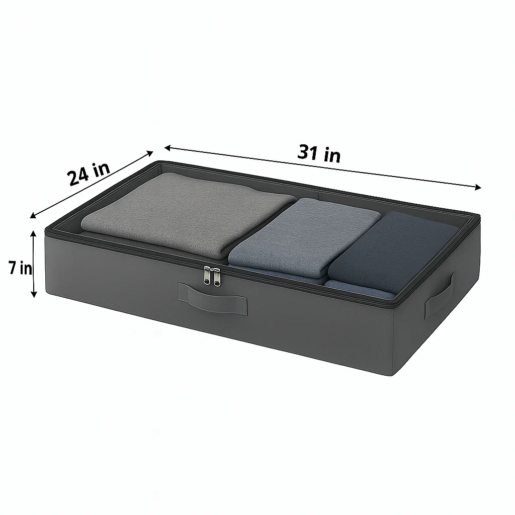 Keep your home clutter-free and organized with this premium underbed storage organizer. Crafted from high-quality 90 GSM nonwoven fabric in a stylish ash gray color, this storage bag offers an ideal solution for storing clothes, bedding, shoes, or seasonal items. Its spacious interior (31 x 24 x 7 inches) fits perfectly under most beds, making it great for space-saving storage.